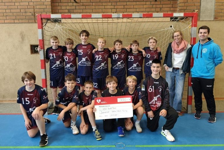 Die HSG Beste Trave erhielt einen Scheck über Euro 300 für einen Jugendabend (Ideengeberin Dörte Siemann-Jaffke).