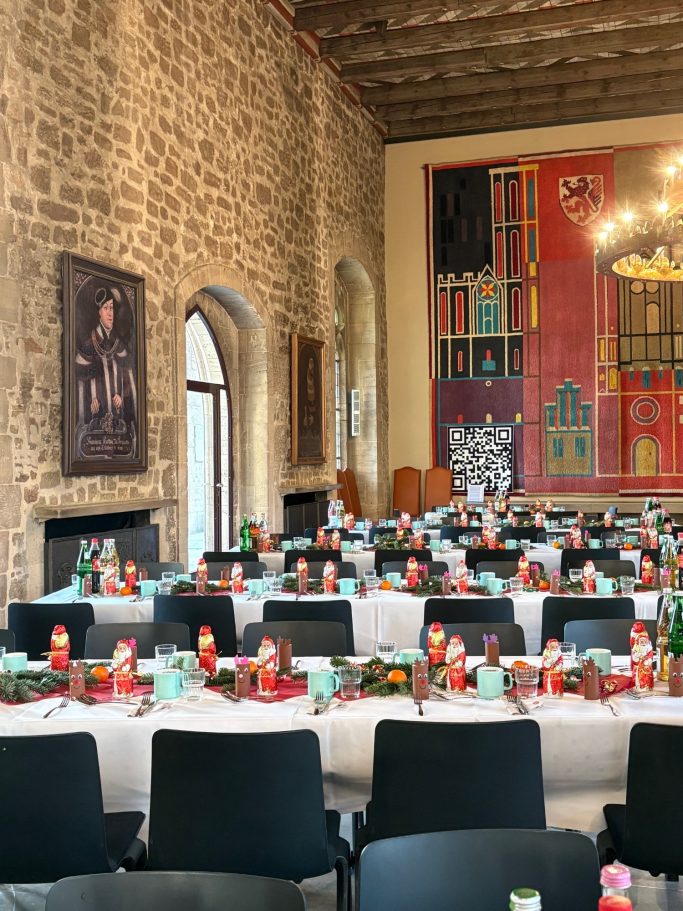 Mitarbeitende konnten sich gegenseitig Weihnachtsmänner zusenden. Der Erlös wird an KlaRissa und Wiesen-Sheriffs e.V. gespendet